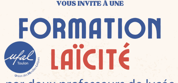 L’UFAL Toulon vous invite à une matinée de formation et d’échanges consacrée à la Laïcité, le samedi 7 février 2026 à partir de 9h30. Cette matinée sera suivie