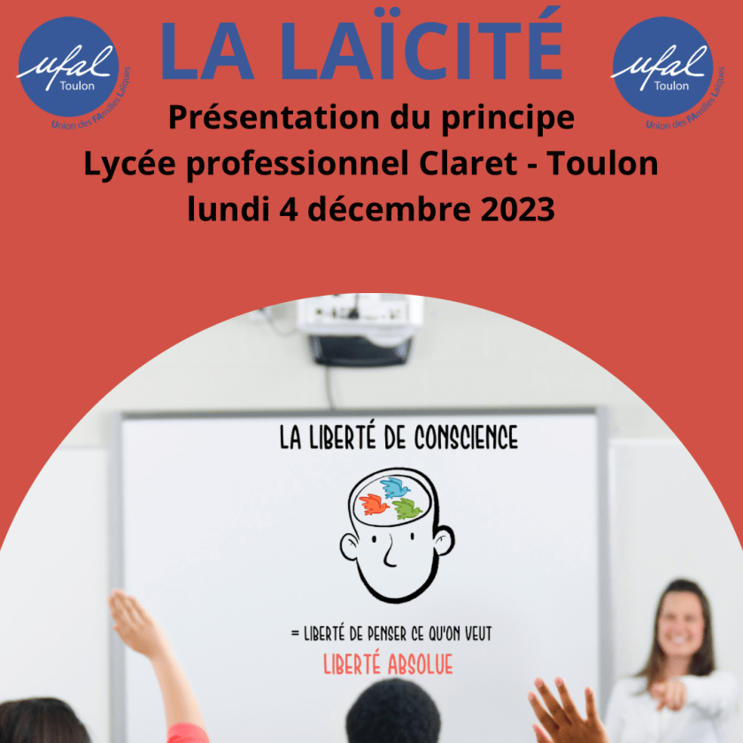 Ce 4 décembre, l’UFAL Toulon présentera le principe de #laïcité à des élèves du lycée professionnel Claret à #Toulon.